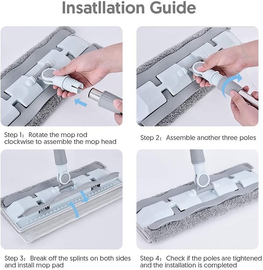 Well Made structure: It is rustless, solid, and easy to mop the floor. Built with a stainless steel plate, with the balance, the mop will not be turned over when cleaning.